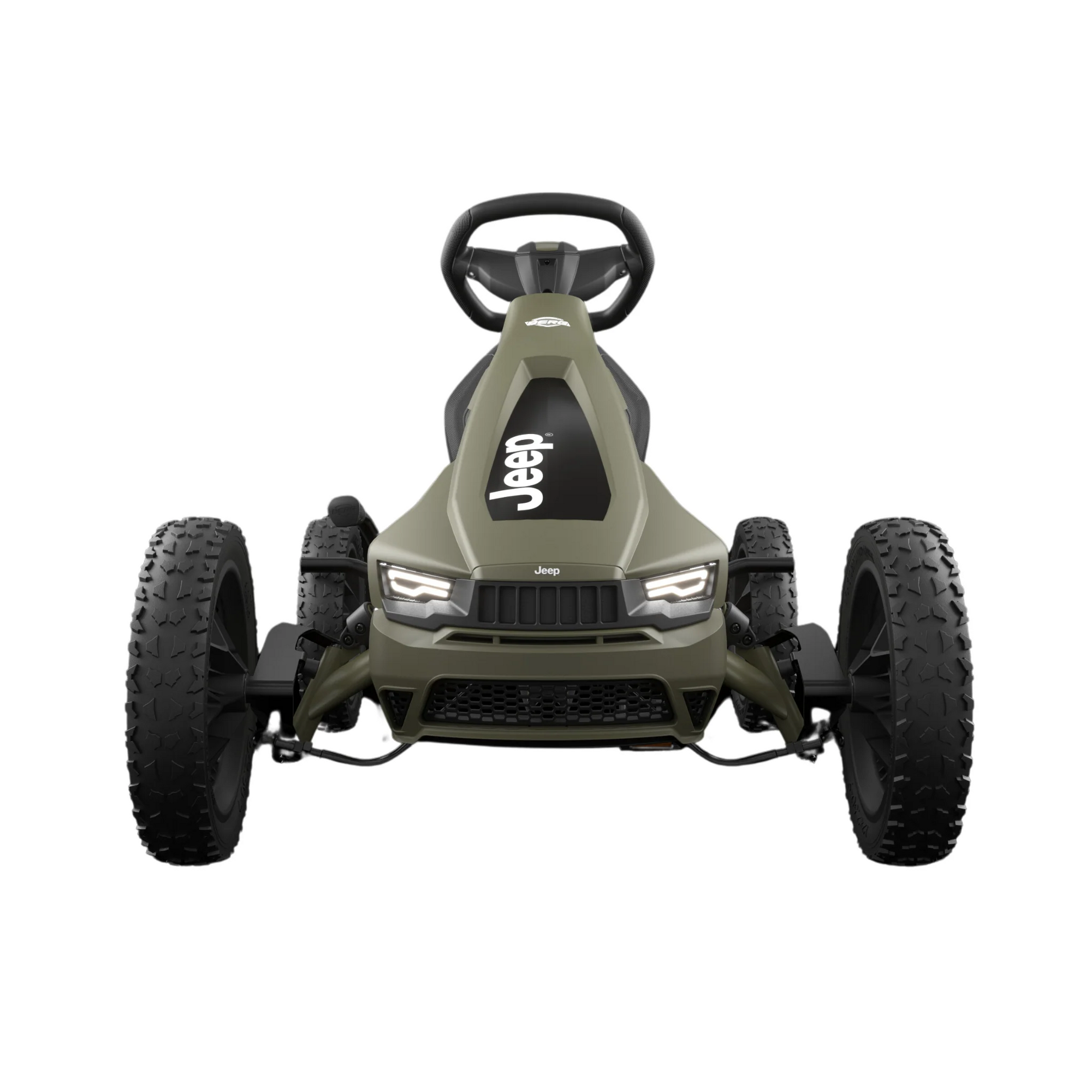 This official Jeep design boasts better visibility with headlights, practice real life skills with indicators & cut loose on all terrain with shock absorbing springs!