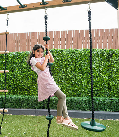 Your little ones can explore the Jungle Gym in various ways, scaling their way around using the knotted rope, step ladder, climbing wall, or rung ladder.