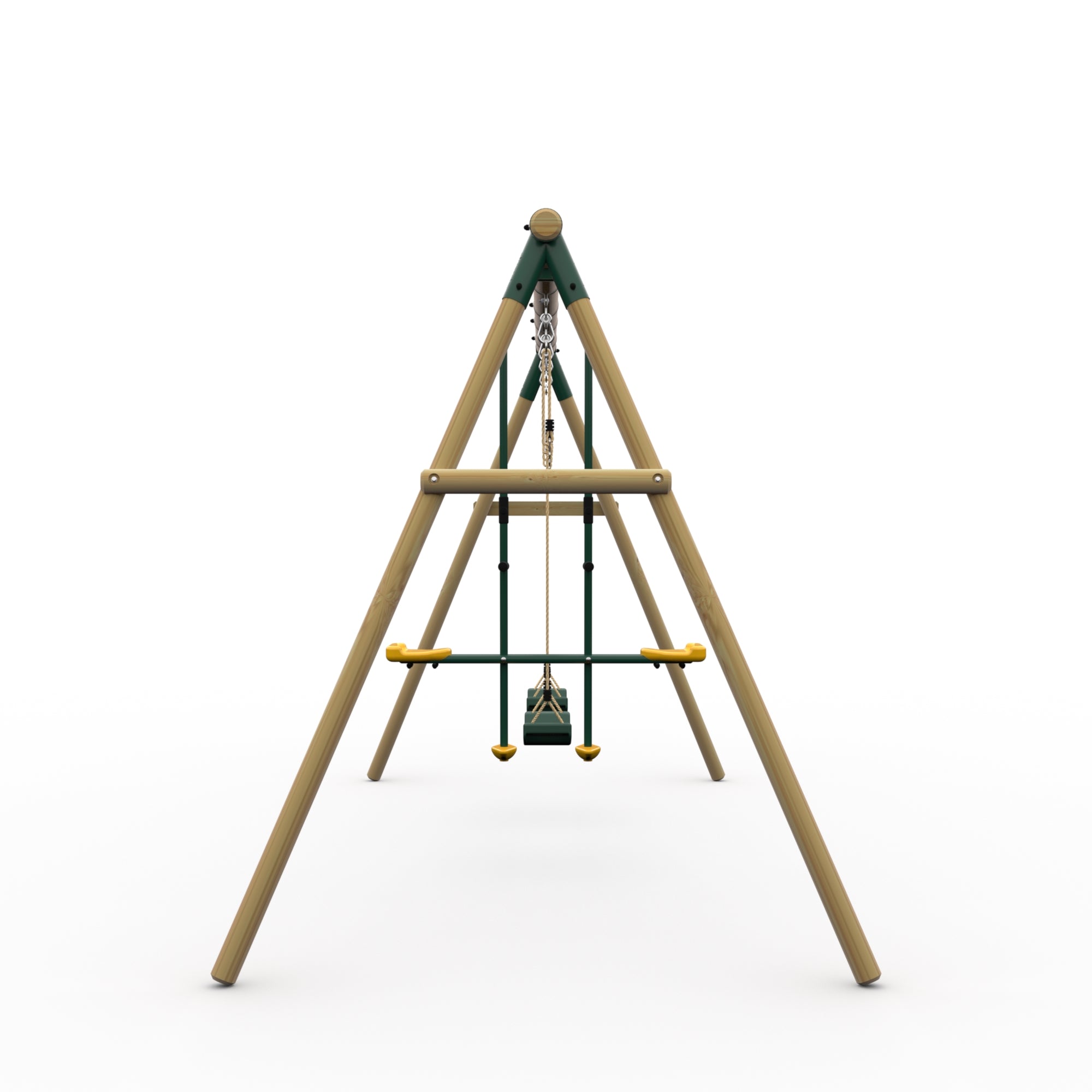 The round pole premium FSC® certified sustainably sourced wood is pressure treated for extra strength. The swing set top bar is 100mm in diameter and the legs are 80mm in diameter making the frame highly robust.