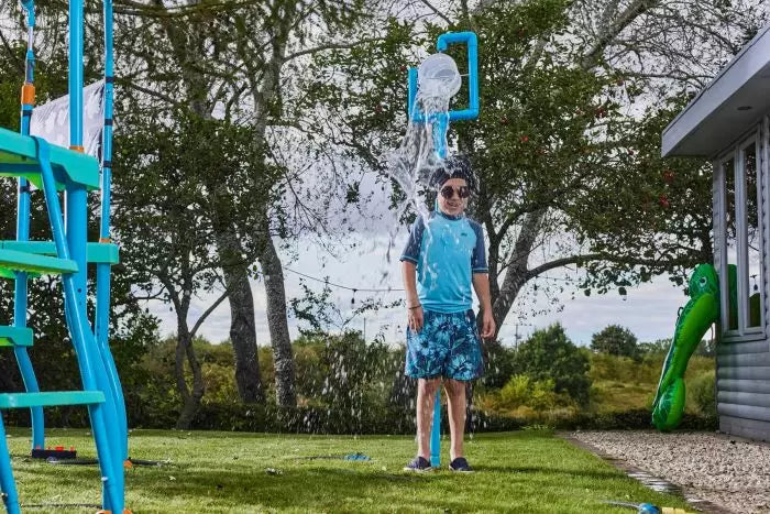 Transform your backyard into an exhilarating water park adventure with the Plum Water Park Shower Tower! Unleash the thrills of a water park right in your own garden as kids climb, blast, and slide their way to endless fun. Simply connect a hosepipe to kickstart the aquatic excitement!