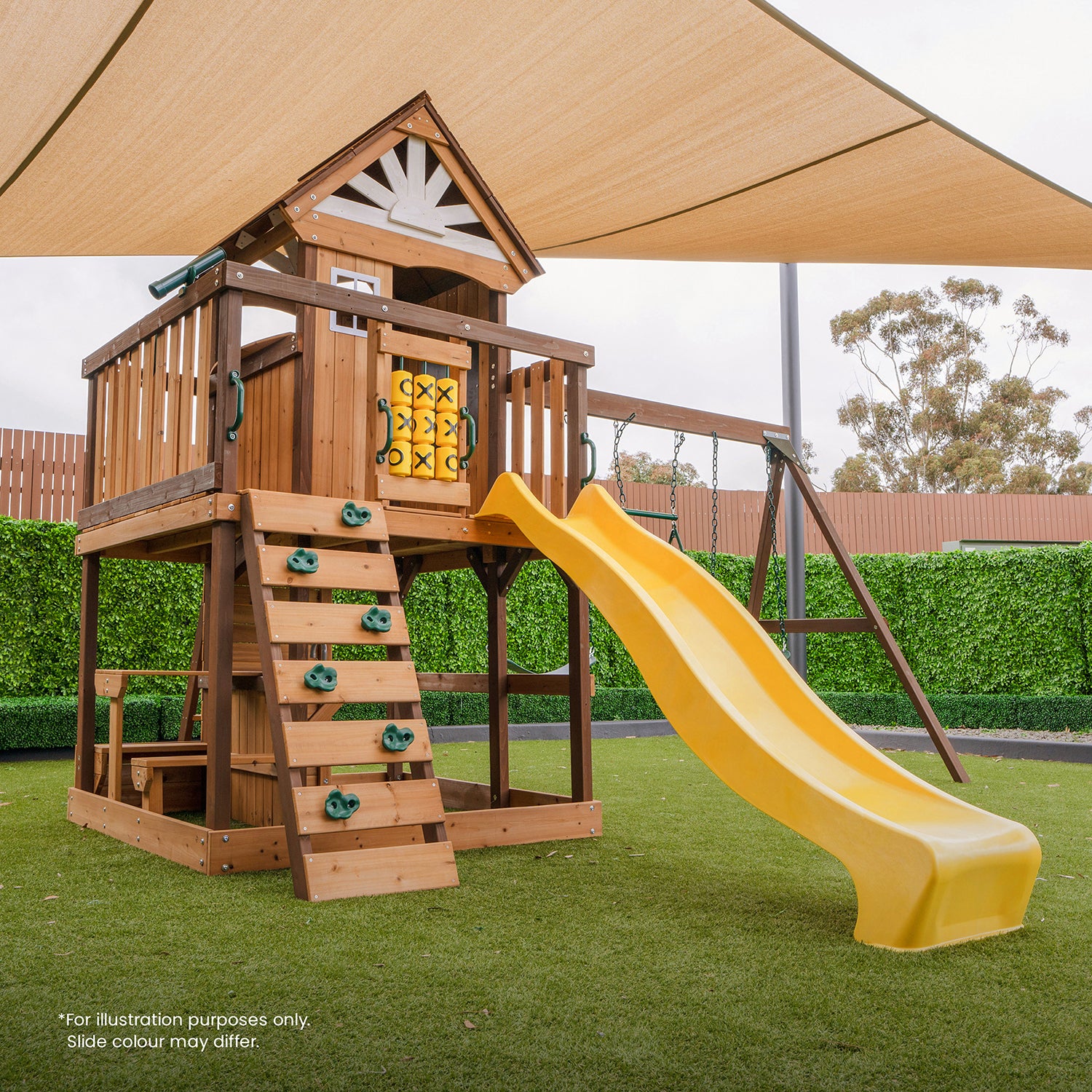 Built from sustainably sourced timber and reinforced with high-strength powder-coated steel brackets, the Coventry is made for long-lasting performance in Aussie conditions. Rigorously tested to meet Australian Safety Standards, it delivers a secure, eco-friendly, and stylish play experience that both kids and parents will adore.