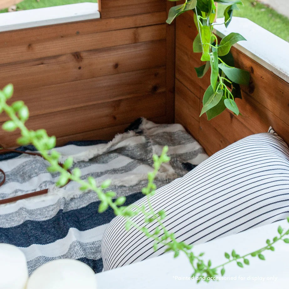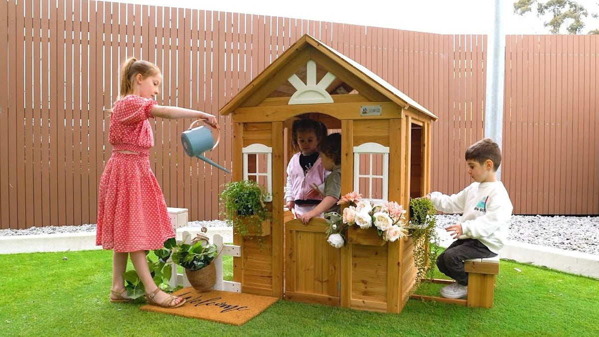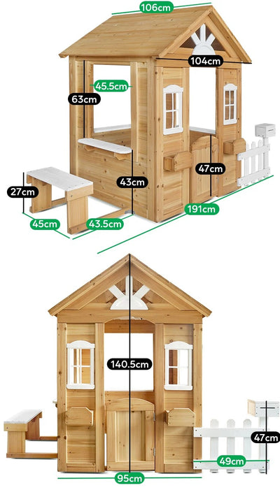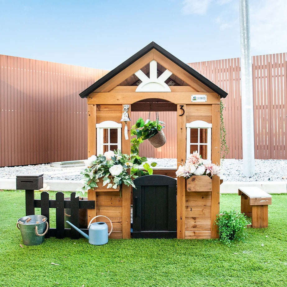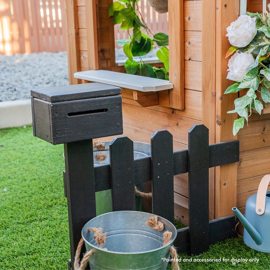 Home is where the heart is. Your little one will adore their own little home to lay down roots. They'll take such pride in their very own white picket fence and mailbox. This cubby is ideal for entertaining guests, with a snack table veranda.